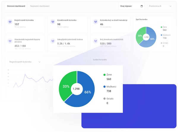 Vaši kupci mogu pratiti svoje stanje bodova, aktuelne ponude, kao i dostupne lokacije u realnom vremenu putem svojih mobilnih uređaja.