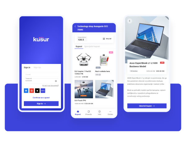 Mjesečnom pretplatom na Kusur, jednostavno upravljajte svojim ponudama i svojim kupcima omogućite digitalizovan i jednostavan način da uživaju u vašim pogodnostima.
